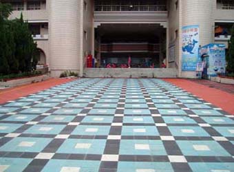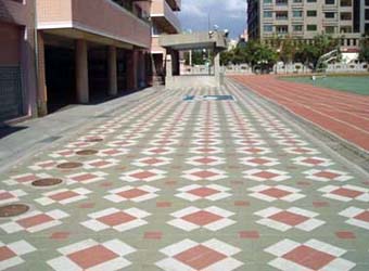 環保透水磚為獲有環保標章之產品,本產品採用資源回收廢玻璃粒料與陶瓷粒料,經絞碎後添加適當配比之結合劑,強力震動後高壓一體脫模,再經高溫成型為100%透心材質,本產品具高透水、高抗壓及無毒害等特性,且本產品具有多種顏色系列可供選擇。