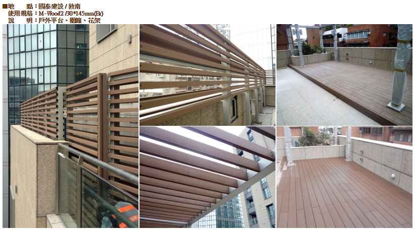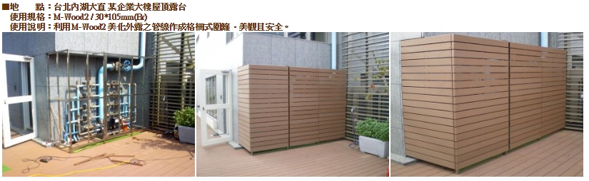 M-Wood2也有較天然木材強的抗UV能力得以長久保持外表美觀。過去泳池畔等..因經常潮濕而難以使用天然木材,如今M-Wood2成為這些場所的最佳選擇。
