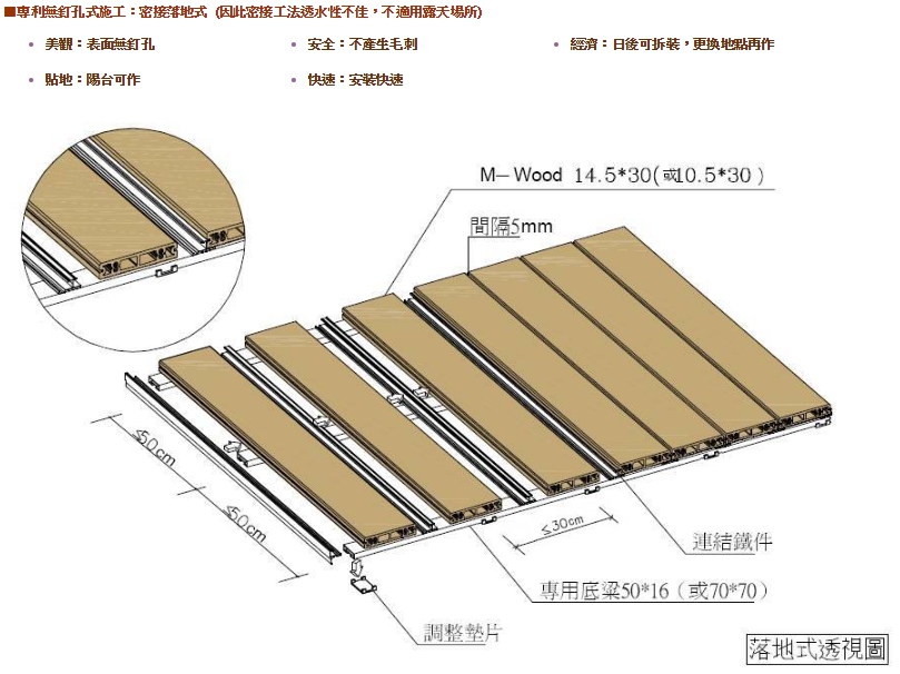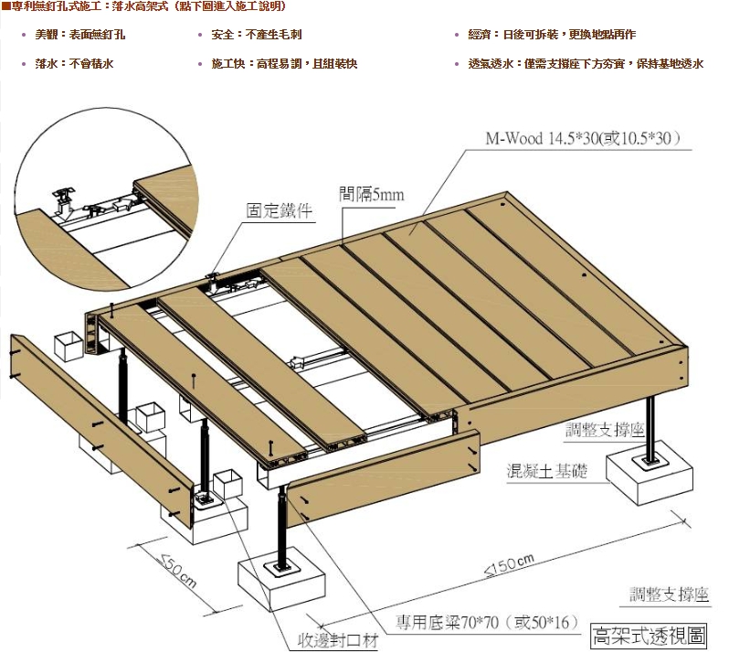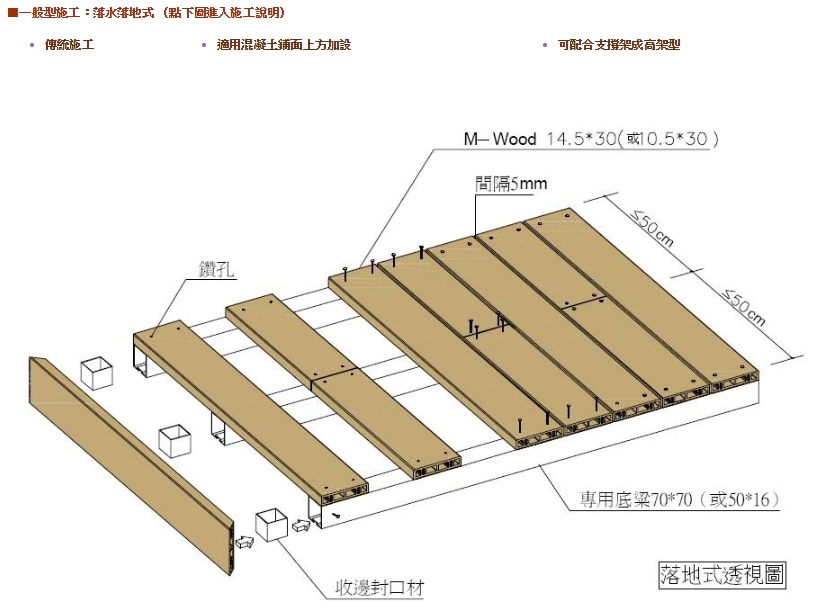 M-Wood2一種耐水耐潮的材料。一般天然木材遇水就會變形腐爛,但是M-Wood2含有樹脂成份,具有耐水耐潮的特性,不用擔心會腐爛及反翹。