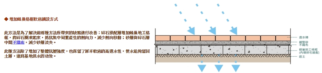 「透水」:防止基層受到污染,而使粒料喪失原本提供排水的功能。