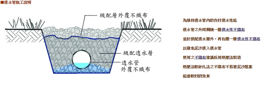 高透水性,不易堵塞,集水性佳 :