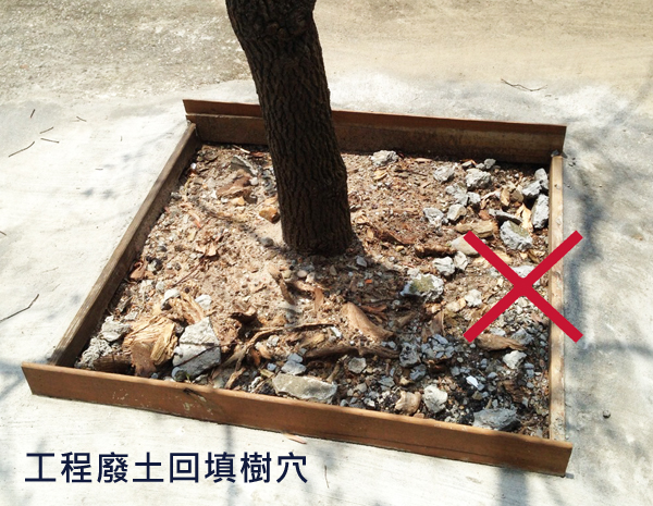 一般樹穴回填土多為基地開挖出來的還原土,甚至是工程廢棄土,除含氧量差不利植物生長發根外,有機質也很少,堅硬的廢棄水泥塊也會造成根部難以生長,且常有重金屬污染和土壤過酸或過鹼的問題。
