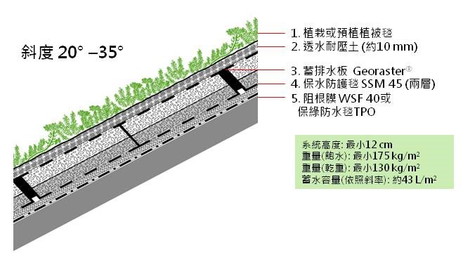 ►  植被層根據日曬的設計不同,將有不同的生長樣貌,特別是在高斜度屋頂