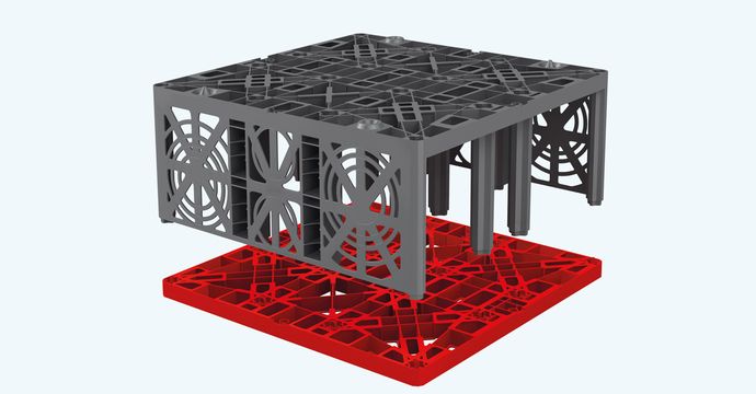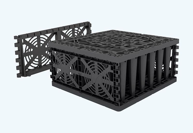 出雨水貯留滲透設備施工快速、簡單安裝。採積木式堆疊。