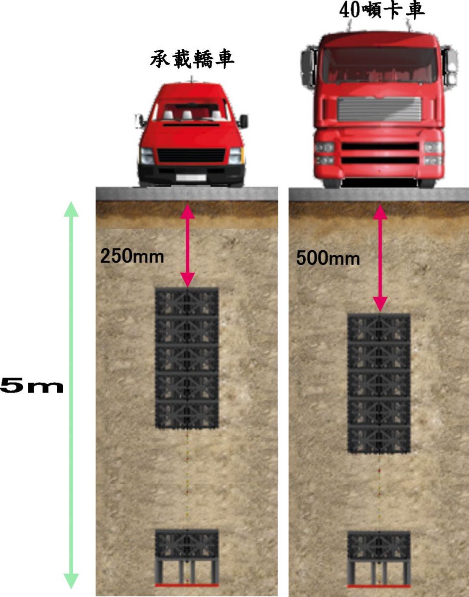雨水貯留滲透設備擁有高載重負荷力,使用上及整個系統上方的土地應用規劃沒有任何限制,