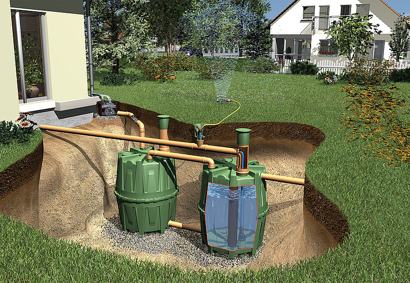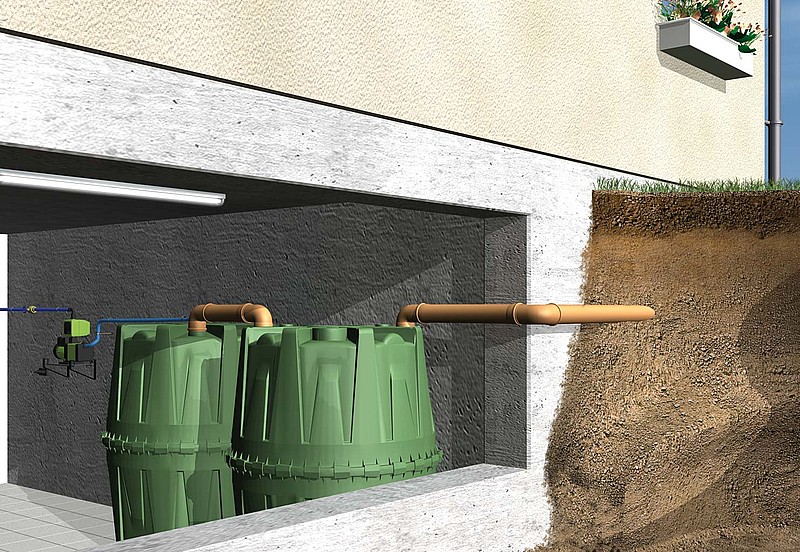 地下室、埋入地底區域的多功能組合式儲水槽。