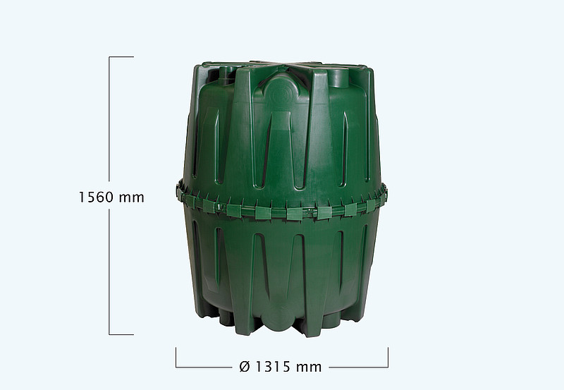 儲水槽組裝完成高度:156 Cm,直徑131.5 Cm,容量為1600公升