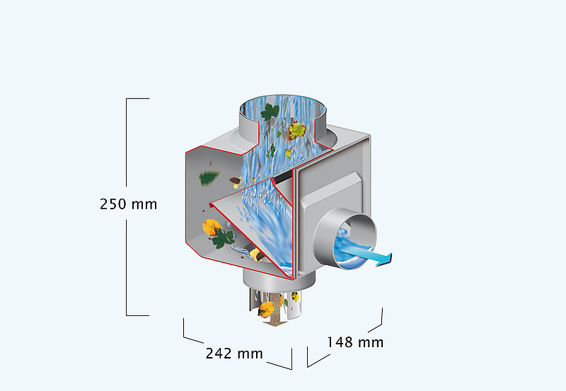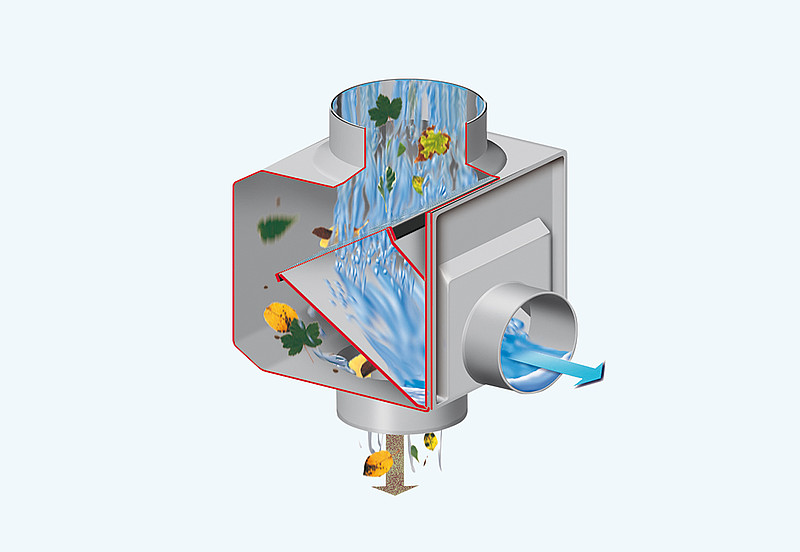 ●落水管截面積不會因安裝過濾器而縮小(符合德國工業標準DIN1986),當有豐富驟雨時,此特性愈顯其重要性。