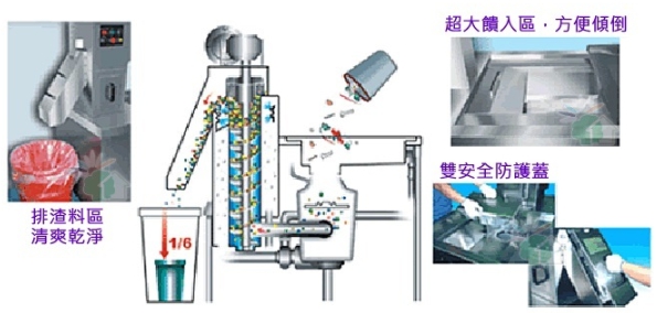 ●將原有殘菜體積,減容至1/6,方便打包處理。