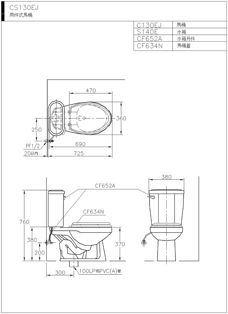 兩件式馬桶+免治沖洗馬桶座CS130EJ-AF788L