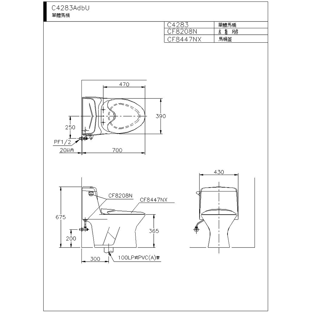 可選購緩降馬桶蓋CF8447ND NT$ 4,200
