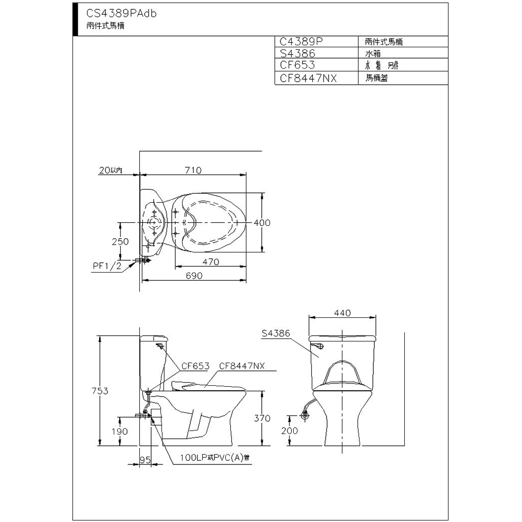 *可選購緩降馬桶蓋CF8447ND NT$ 4,200