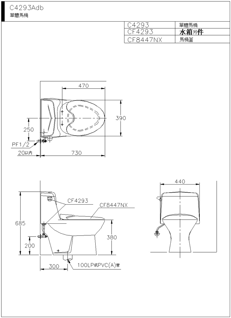 *可選購緩降馬桶蓋CF8447ND NT$ 4,200