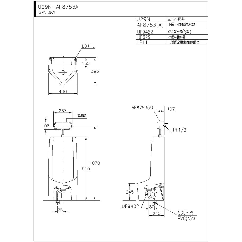 壁面排水配件:AF8753(A)、UF629、UF9472L、LB11L(一組)