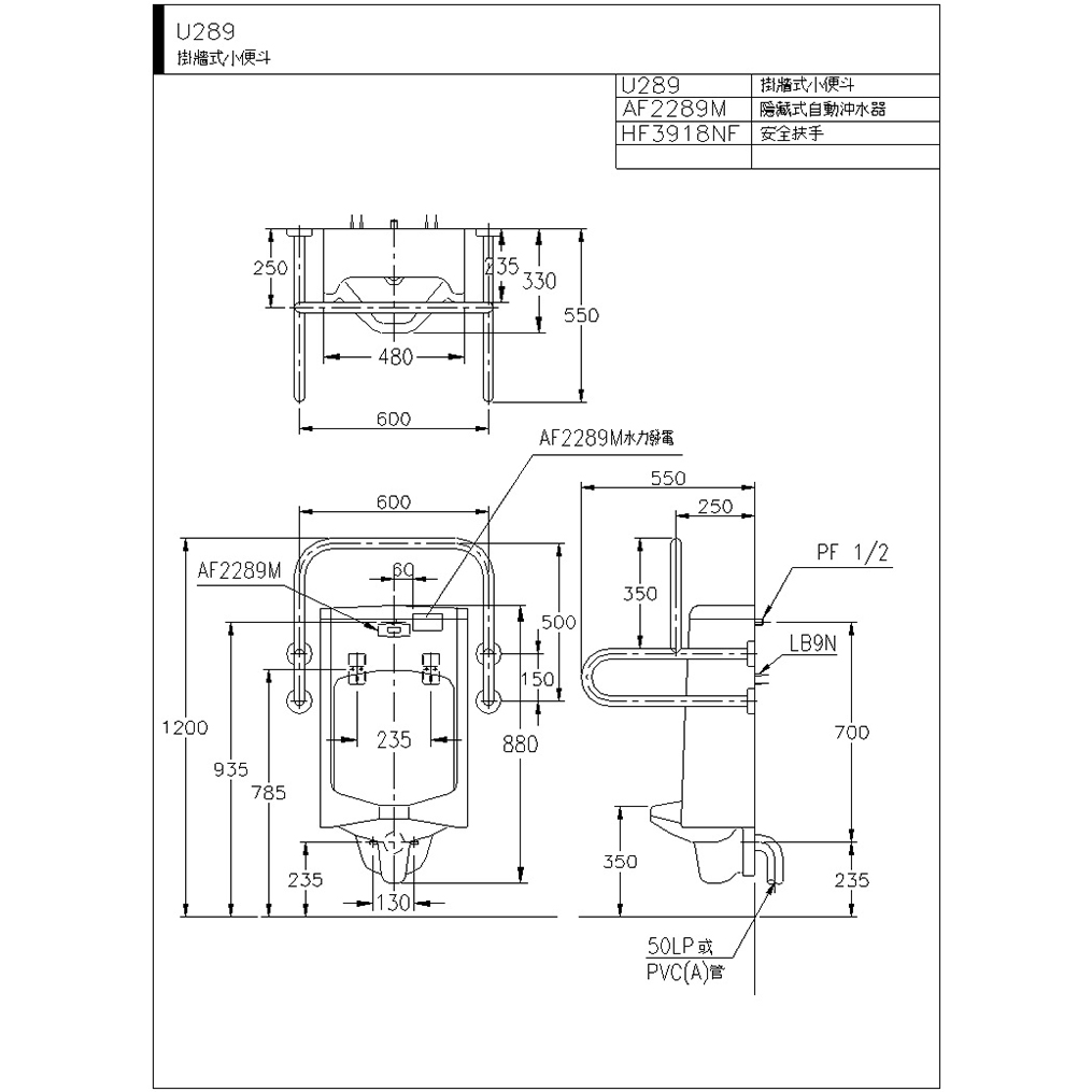 內建感應沖水器大型立式便斗UA0295-17.5cm