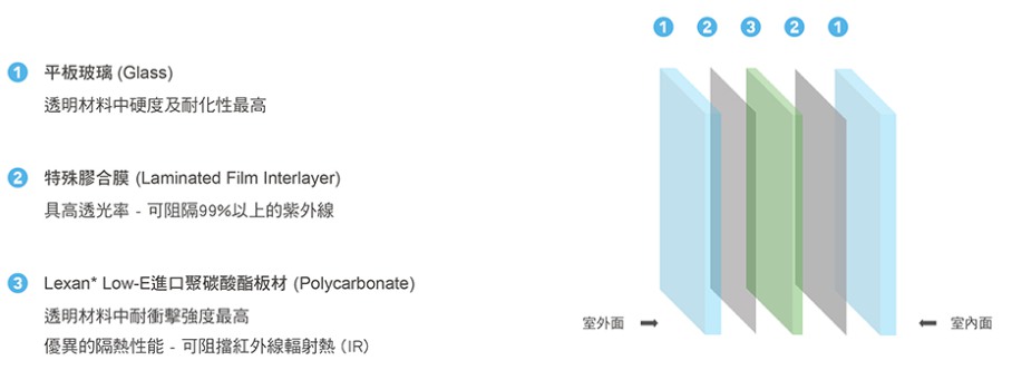 ●防盜節能雙皆具 防盜與Lexan*Low-E板材結合