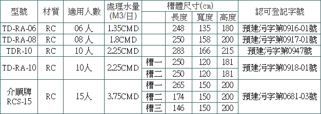 東鼎牌RC污水處理設施RA 6/8/10/10/15