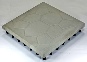 以混凝土經震動成型,成一水泥板厚約2.5cm,49支PE支架厚度3.5cm之高腳磚,利用空氣層產生對流作用,而達到隔熱效果。