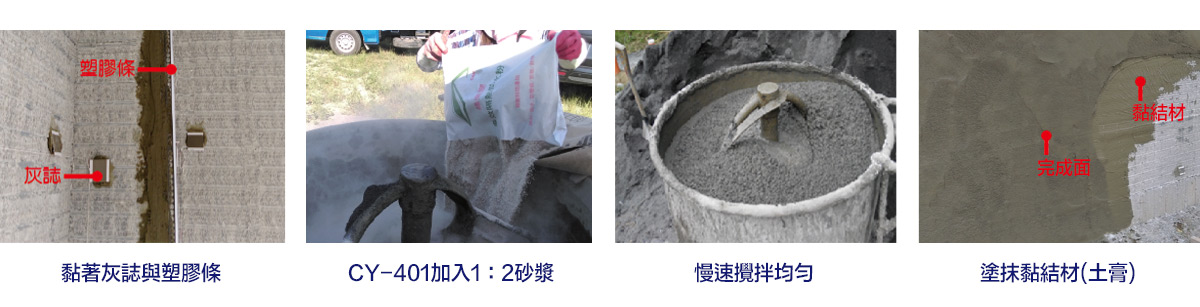 2.將CY-401加入1:2的砂漿後慢速攪拌均勻。