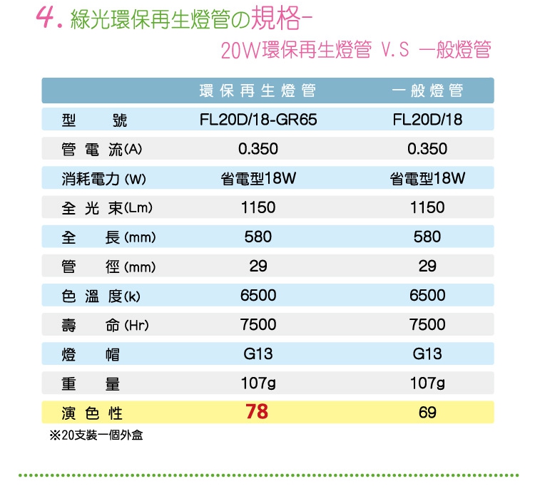 中台綠光環保再生燈管(40W)