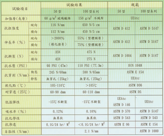 本產品為原裝進口材質為SBS自黏性橡化瀝青(伸長率> 2000%)其中間夾有一層高強度聚酯纖維不織布或玻璃纖維毯以增加其強化作用;表面再由矽砂崁入因此具有止滑的功能;底面黏著於離型紙上形成自黏式。本產品是一般斜面屋頂防水材的最佳選擇,被廣泛使用於銅瓦,鋼瓦,愛可瓦,德高瓦,日本瓦西班牙瓦和琉璃瓦…等下層做為防水專用卷材。