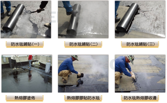●依設計單位規定可鋪上耐溫纖維網,耐溫不織布,各式油毛氈和改質瀝青防水毯作為夾層處理,以發揮更佳之防水效果。