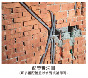 居家內裝易修改、可升級輕質隔間磚牆開槽配管施工容易,未來裝潢要改變水電配管也可輕鬆施工並粉刷修復,不需拆除整片牆面。