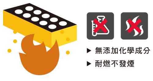 原料製程天然零添加,無毒、防火、不燃, 居住更安心。