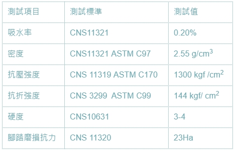 ●彌補天然石材的色澤不均的缺點。色澤均勻、紋路對稱、搭配較具整體性,適用場合廣泛,為人性化環保建材。