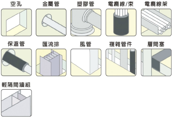 各種貫穿管件防火填塞的縫隙