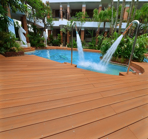 南亞舒活景觀板外觀近似天然木,環保、耐候性佳、防水、防蟲,不含防腐劑、塑化劑,無木材易受潮膨脹、裂痕問題,耐用易維護。