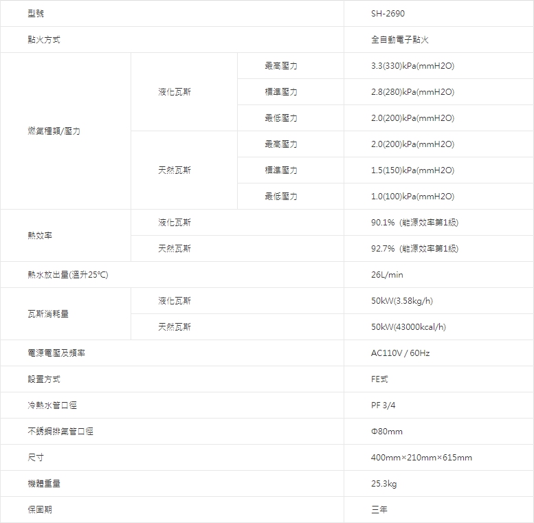 SH2690 26L 冷凝高效智能恆溫熱水器