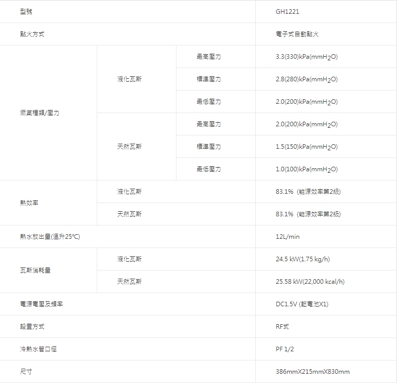 GH1221 12L 抗風型屋外傳統熱水器