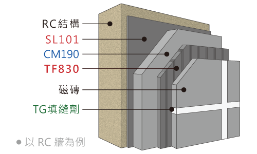 用途 馬賽克、山型磚、重型磚等各類磁磚之牆面黏著
