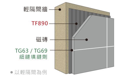 | 用途 | 各類磁磚於打底材及輕隔間板牆面,高附著力需求黏著 |