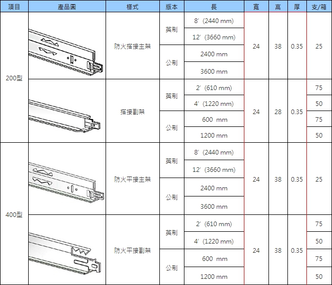 • 最大的特色是平接式防震接頭設計,並沖有防火孔,故稱為防火抗震型T-BAR。