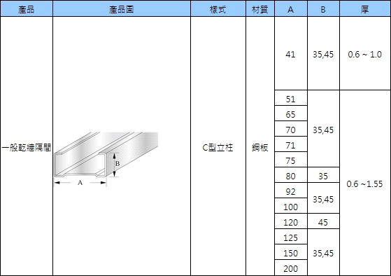 ●以C型立柱搭配U型上下槽成為一般型乾牆隔間骨架。