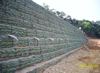 加勁格網常使用於建構加勁擋土牆。利用加勁格網網孔與土壤壓密後結合形成內握裹力錨定,並以加勁格網之優越抗張性,分層消化圓弧破壞應力,與土壤形成整體結構,對場區土方平衡、綠化,有絕對的效益,加勁格網使用之設計極限強度及深入有效長度視工程環境及條件而定。加勁格網並可適用於水利、防洪、港灣、堤防、邊坡保護基礎、公路、隧道等工程。本公司可依客戶需求分析、設計、規劃加勁擋土牆,並生產各式規格之加勁格網、擋土包、加勁內部排水系統。