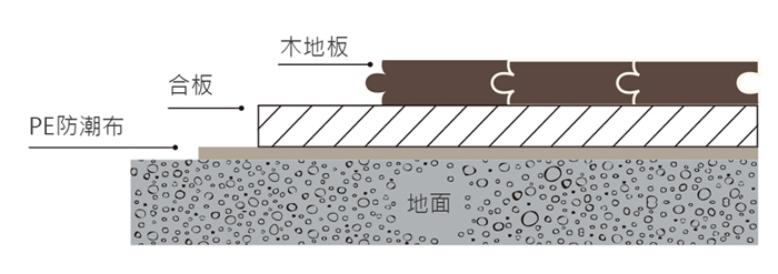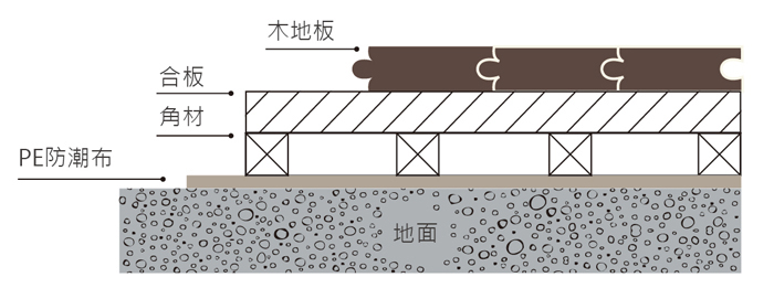 2. 將夾板平鋪於防潮布上,並用鋼釘固定。