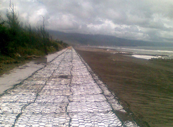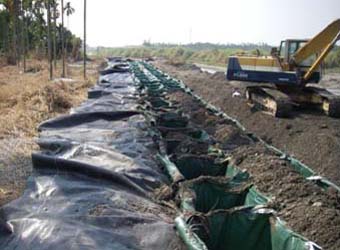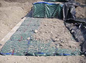 土石籠是以高鍍鋅機編石籠內部置放透水織物袋(織布或不織布),織物袋內填充就地取材之泥土、砂土、礫石或天然級配,組立形成重力式擋土護坡結構體。含水量太高之泥土、砂土,可以添加攪拌水泥固化,依據各種工程需求及填料種類,選擇適當的織物袋,織物袋須具有足夠的抗拉強度,抗穿刺力、抗撕裂力、透水係數及厚度等特性。