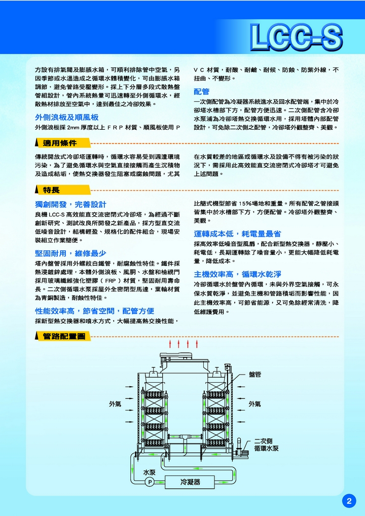 用途 挾帶廢熱的冷卻水在塔內與空氣進行熱交換,使廢熱傳遞給空氣並散入大氣